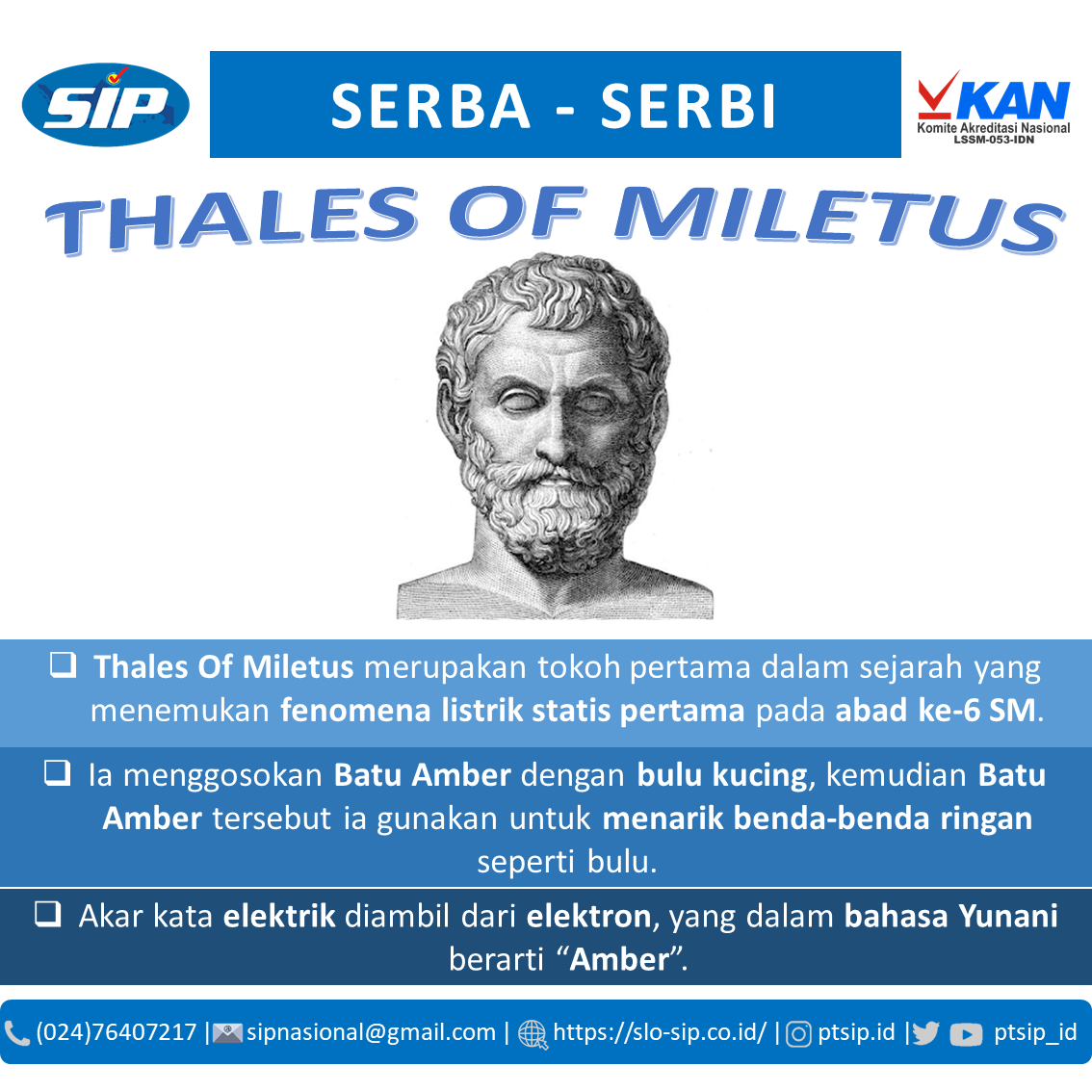 Thales of Miletus menjadi salah satu tokoh pertama yang mengamati fenomena listrik statis. #SLOSIP #SertifikasiInstalasiPrima #SerbaSerbiKetenagalistrikan #PTSIP