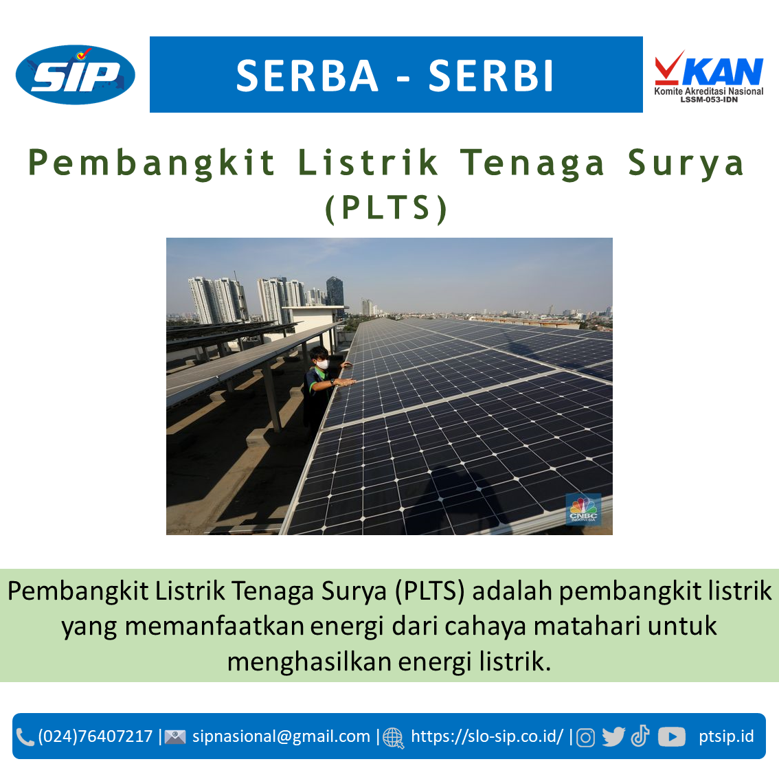 Pada Pembangkit Listrik Tenaga Surya PLTS, panel surya mengubah energi cahaya matahari menjadi energi listrik yang bersih dan terbarukan. #SLOSIP #SertifikasiInstalasiPrima #SerbaSerbiKetenagalistrikan #PTSIP