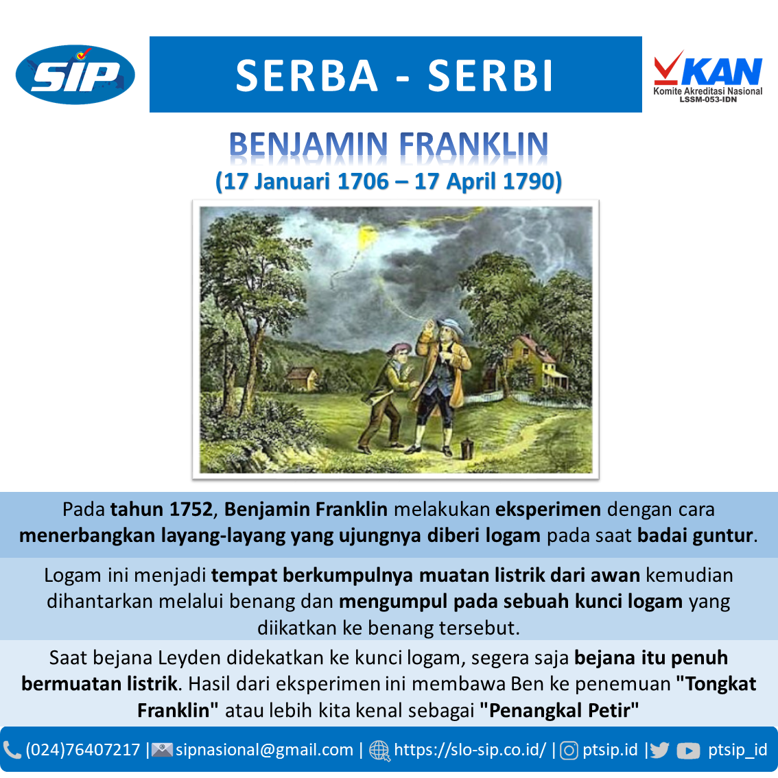 Tahukah kamu? Penangkal petir lahir dari eksperimen Franklin menerbangkan layang-layang saat badai.#SLOSIP #SertifikasiInstalasiPrima #SerbaSerbiKetenagalistrikan #PTSIP