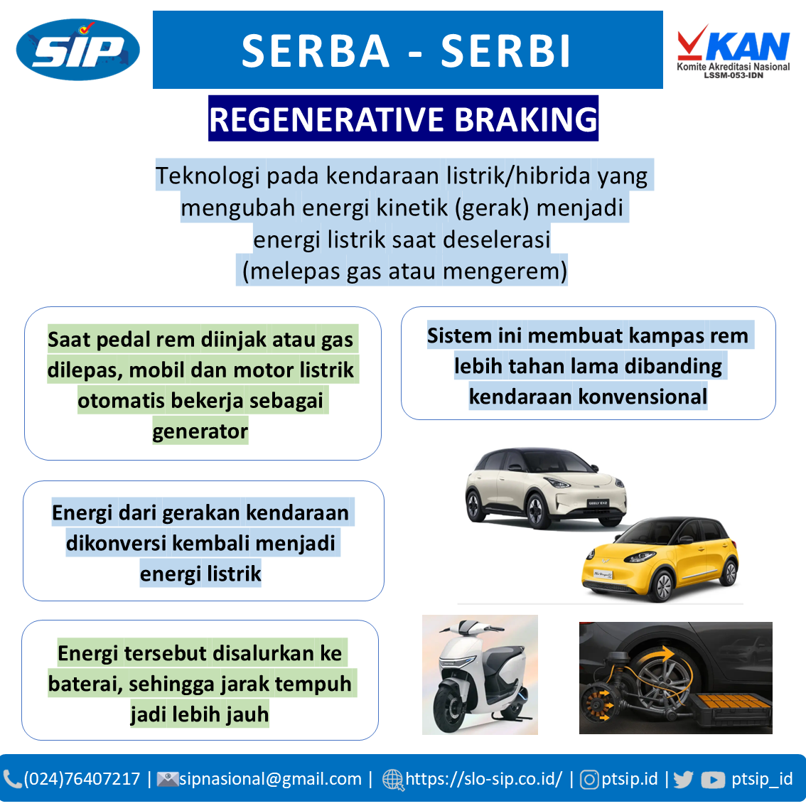 Regenerative braking adalah teknologi pada kendaraan listrik/hibrida yang mengubah energi kinetik gerak menjadi energi listrik saat deselerasi melepas gas atau mengerem. #SerbaSerbiKetenagalistrikan #ElectricalSafety #SLOSIP #SertifikasiInstalasiPrima
