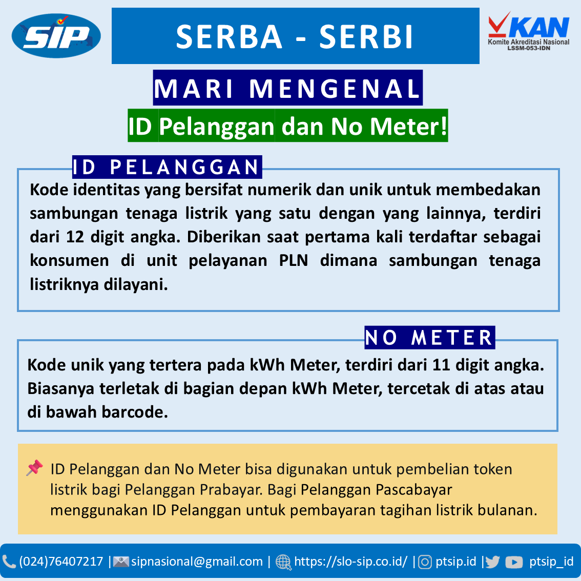Mari mengenal ID Pelanggan dan No Meter PLN! ID Pelanggan dan No Meter bisa digunakan untuk pembelian token listrik bagi Pelanggan Prabayar loh Sobat PT SIP! Dan bagi Pelanggan Pascabayar menggunakan ID Pelanggan untuk pembayaran tagihan listrik bulanan. #SerbaSerbiKetenagalistrikan #ElectricalSafety #SLOSIP #SertifikasiInstalasiPrima
